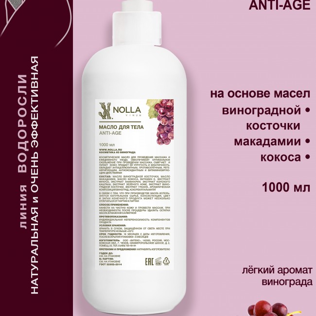 - Масло виноградной косточки богато жирными кислотами (линолевой, олеиновой, пальмитиновой, стеариновой и другими кислотами), микро- и макроэлементами, витаминами А, В, С, Е и РР, в нем содержится натуральный хлорофилл, дубильные вещества и антиоксиданты (процианиды). Обладает выраженным увлажняющим, регенерирующим, антиоксидантным и витаминизирующим действием. Процианиды, содержащиеся в масле, благодаря своим антиоксидантным свойствам повышают выработку коллагена и эластина кожи
